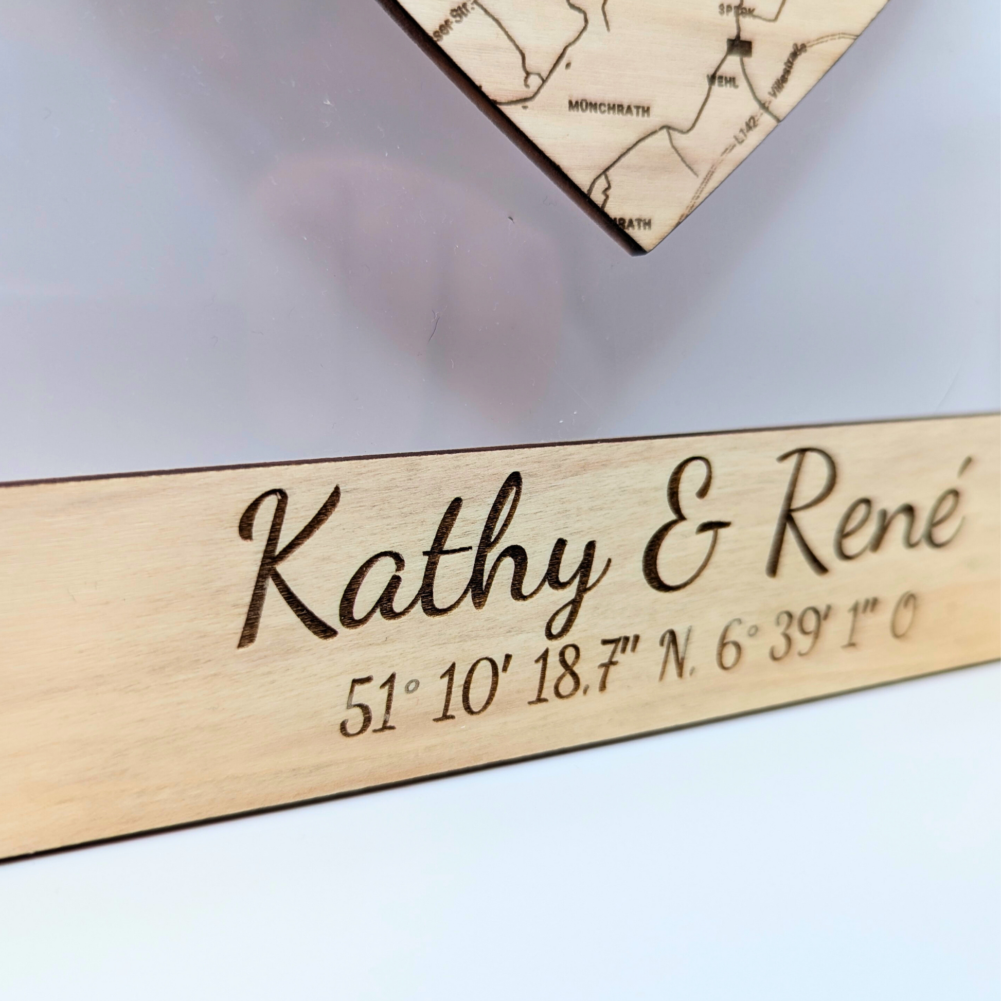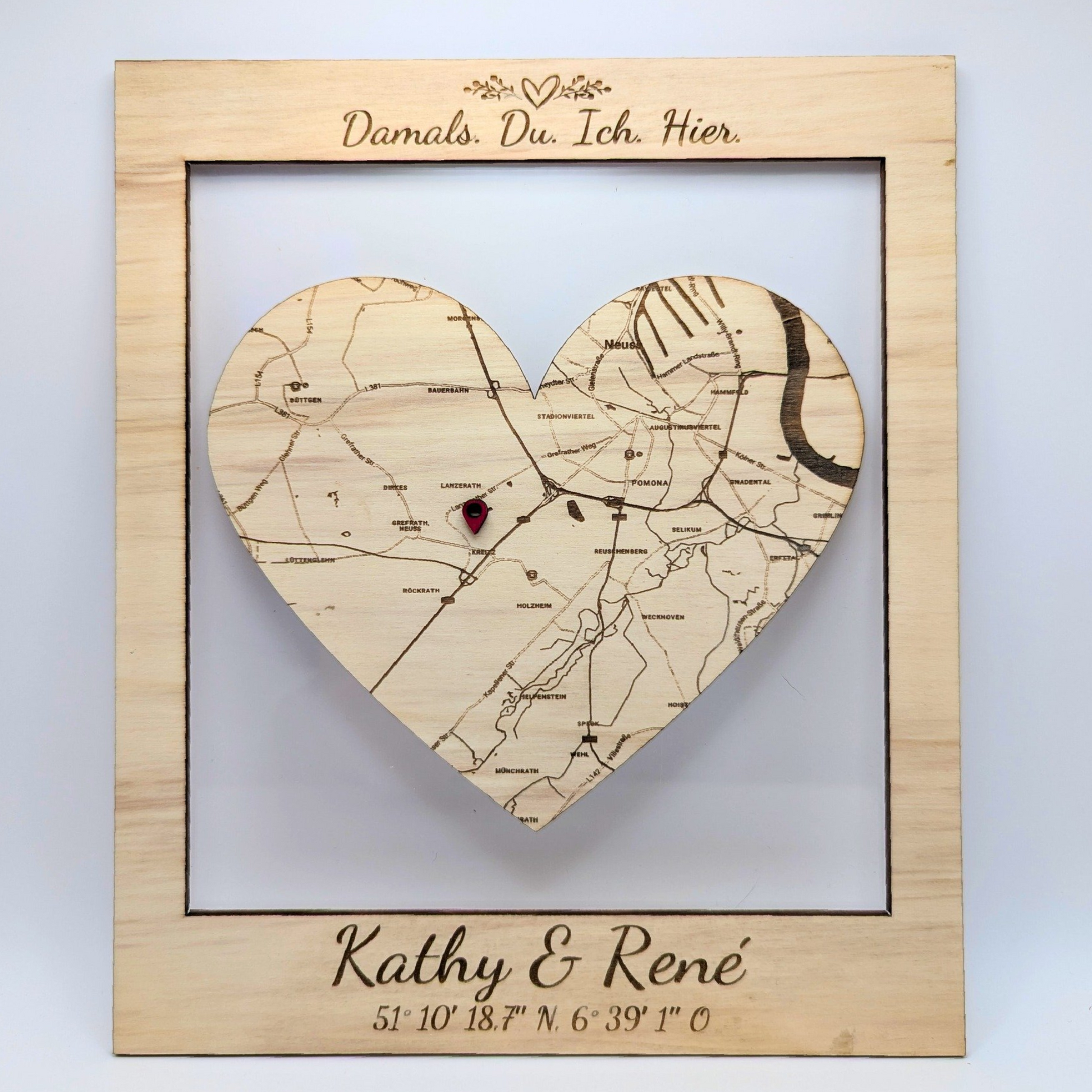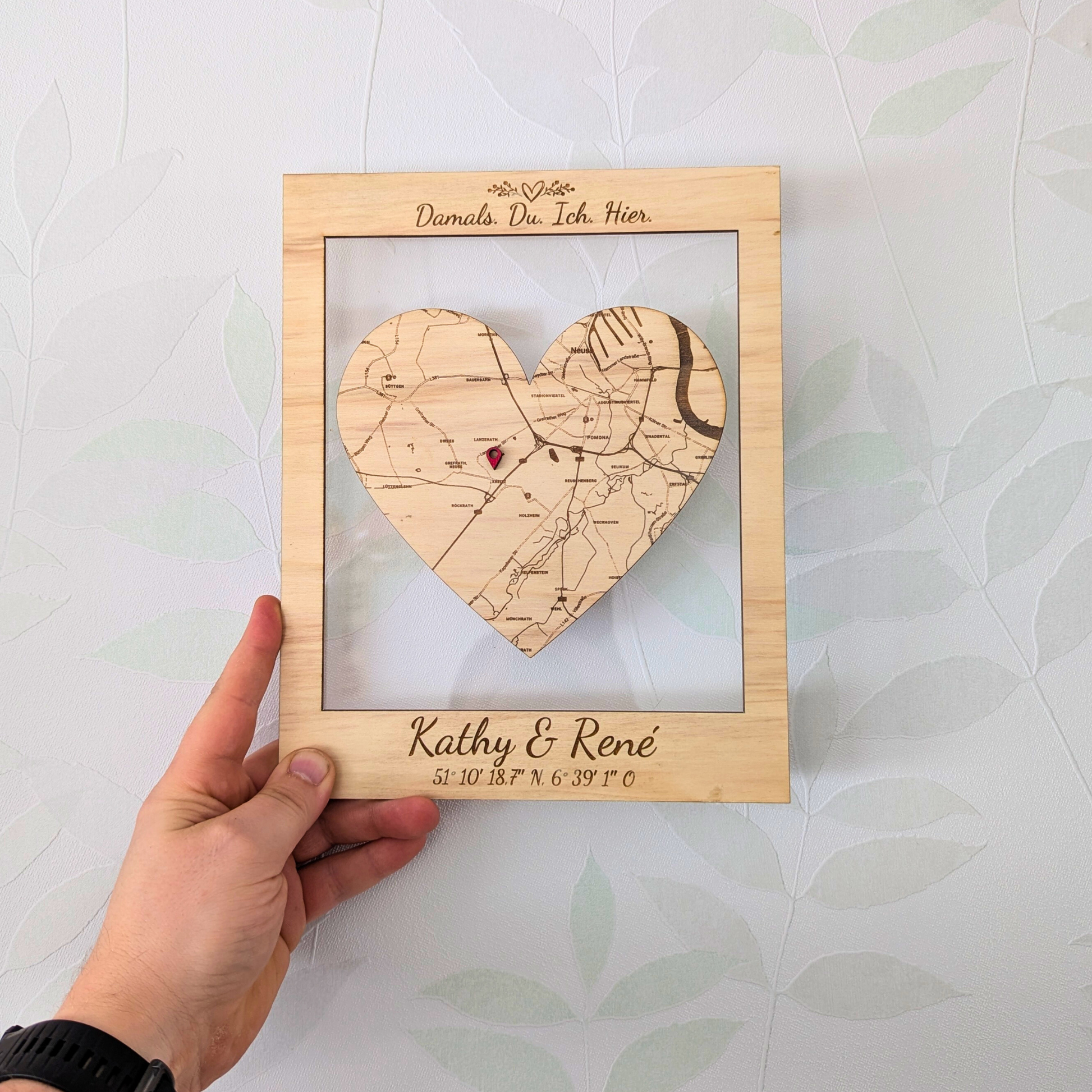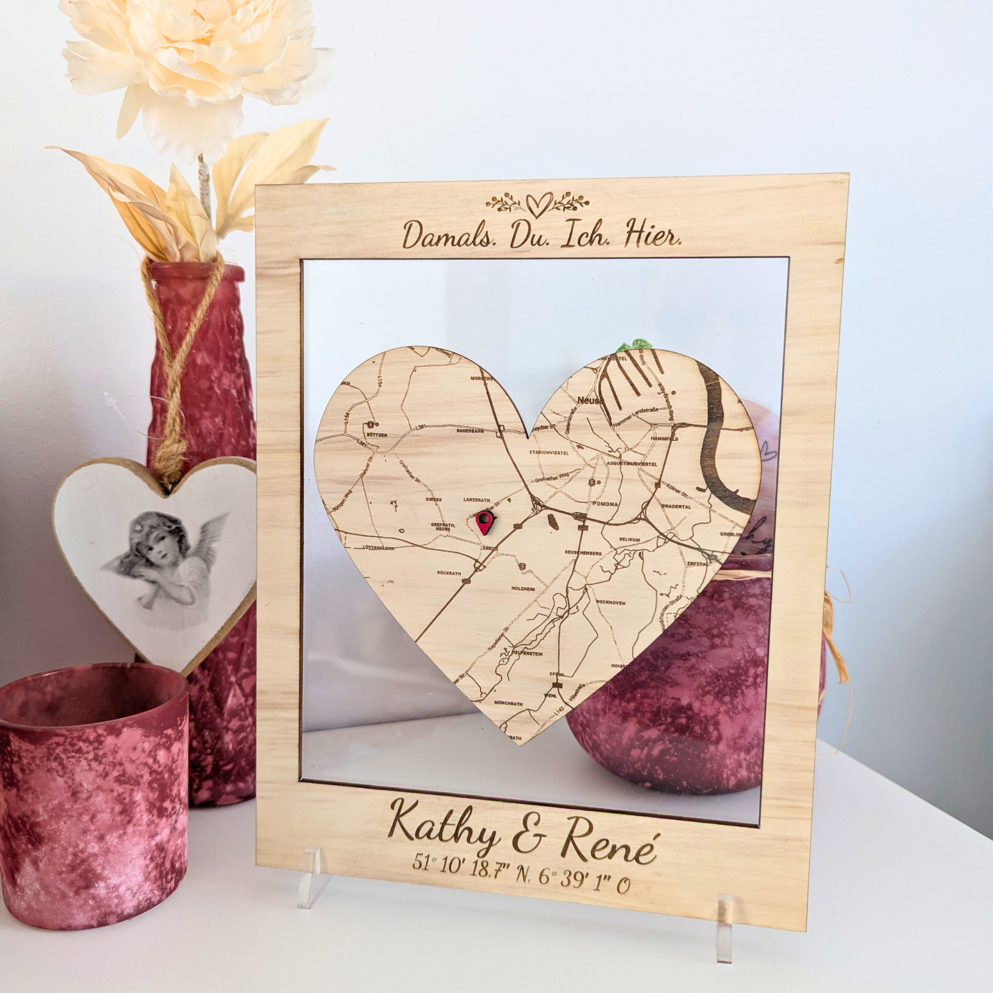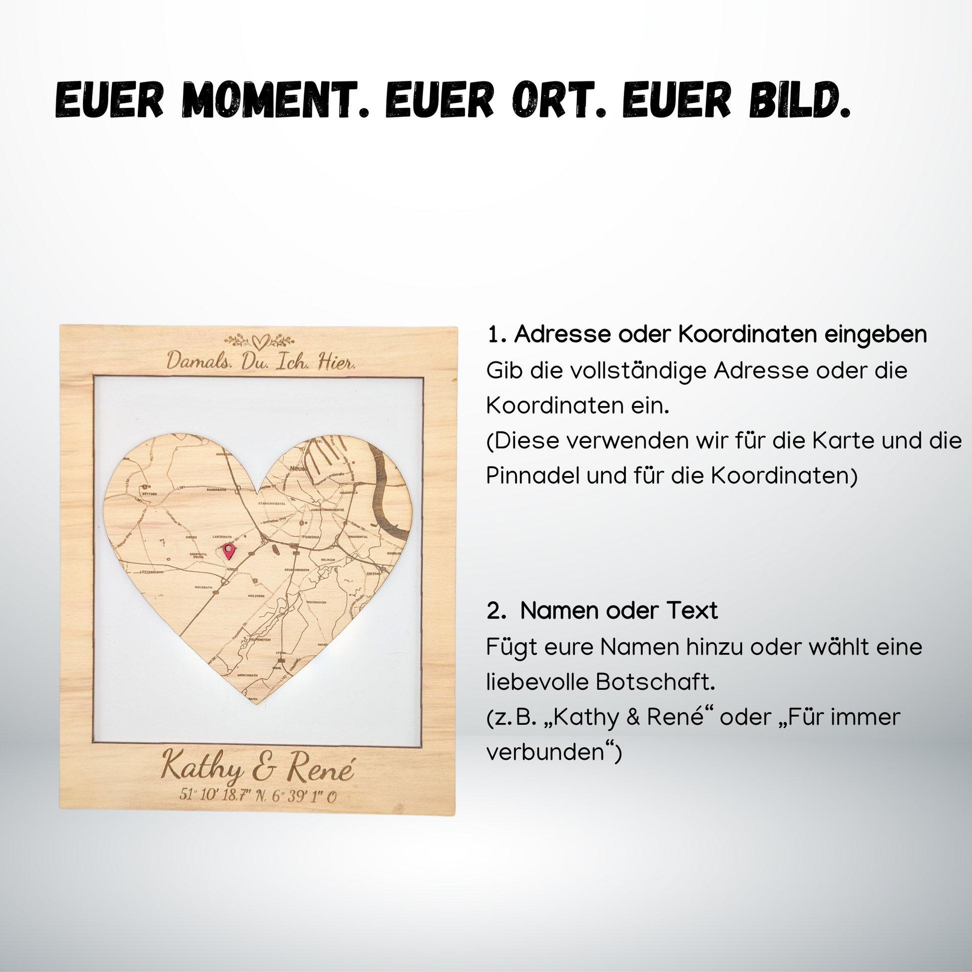 Damals. Du. Ich. Hier. – Erinnerung als Holzbild mit Karte