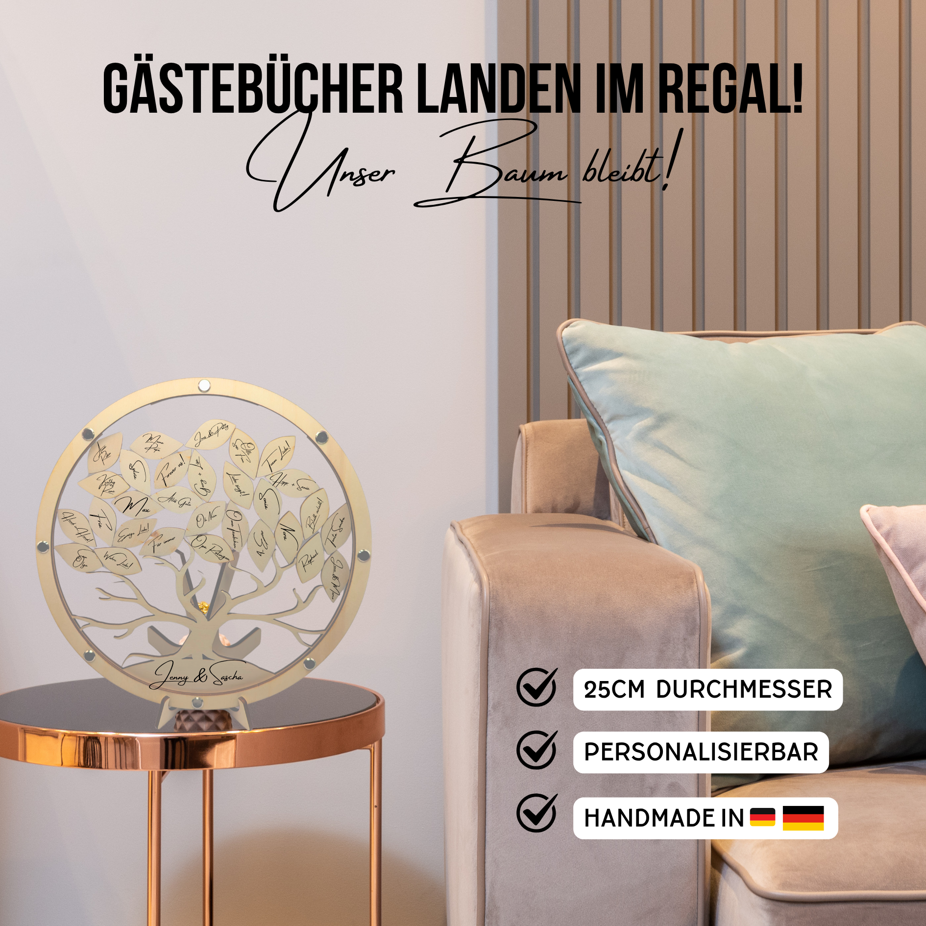 Vergiss langweilige Gästebücher, die im Regal verstauben! Der „Erinnerungsbaum Liebe“ ist das moderne Gästebuch 2.0 – stilvoll, personalisierbar und ein echter Hingucker in eurem Zuhause.