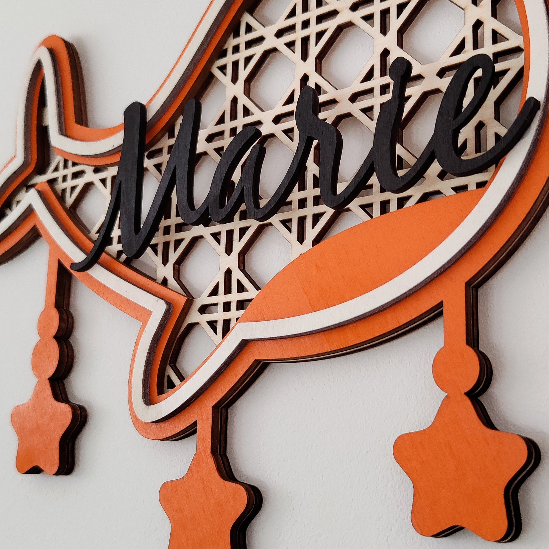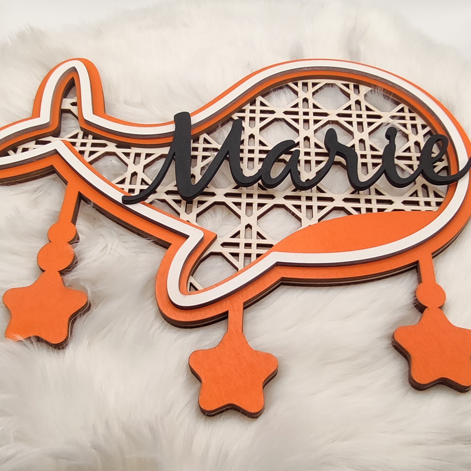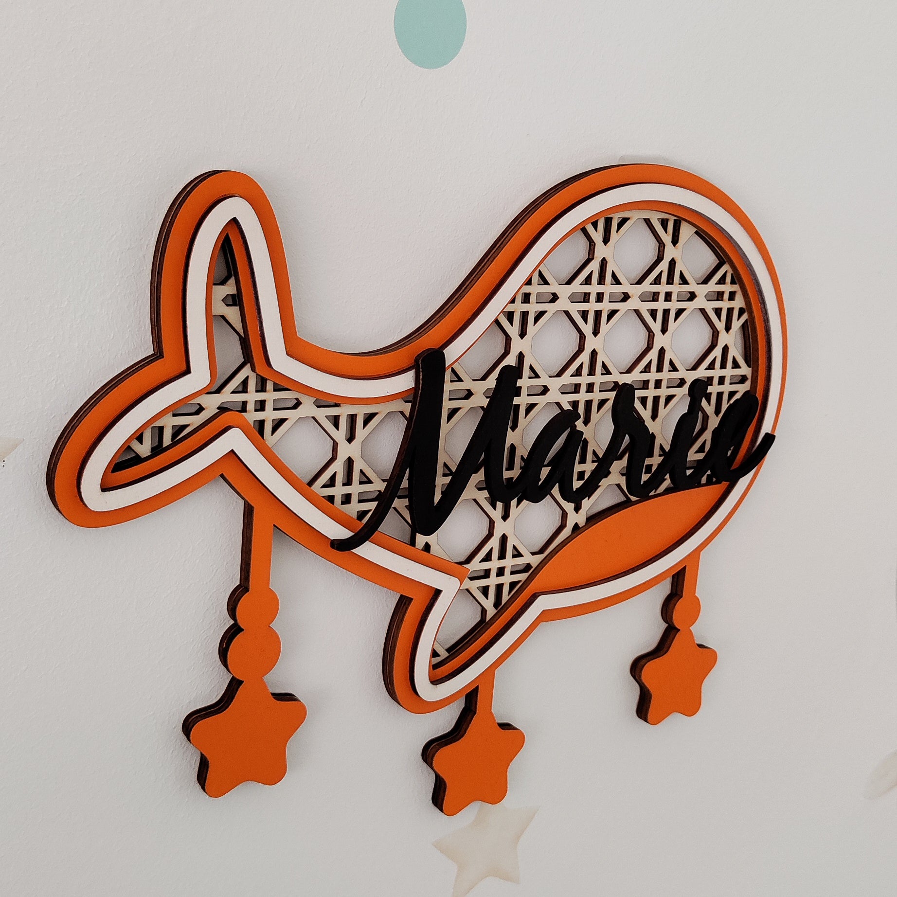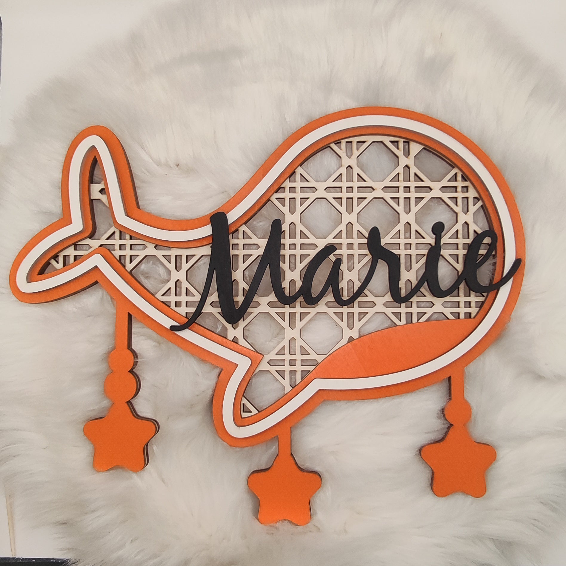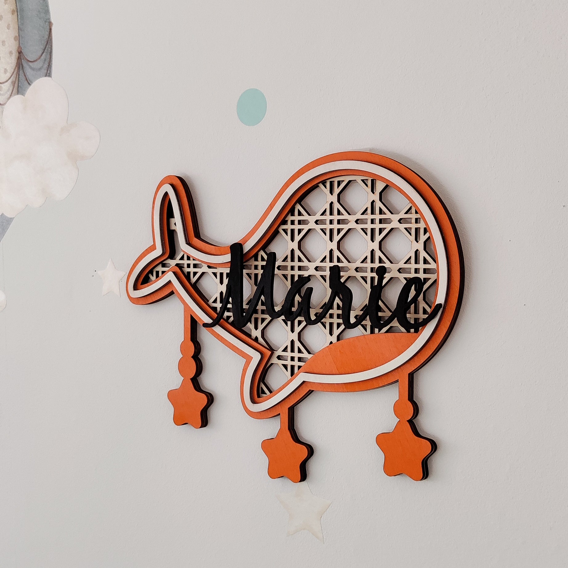 Dieses charmante Türschild in Form eines Wals ist eine wundervolle Ergänzung für jedes Kinderzimmer. Mit seinem liebevollen Design, dem orientalisch inspirierten Muster und den niedlichen Sternanhängern bringt es eine persönliche Note und verspielten Charme in den Raum.