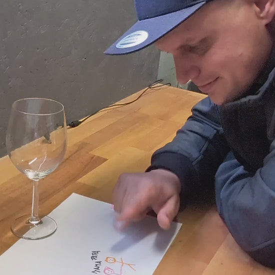 Aus kleinen Händen entstehen die größten Geschenke. Dieses hochwertige Weinglas wird mit der Zeichnung deines Kindes oder einer handgeschriebenen Botschaft zu einem ganz persönlichen Einzelstück. Einfach ein Foto oder Scan der Zeichnung hochladen, wir verwandeln sie in eine langlebige, filigrane Gravur.