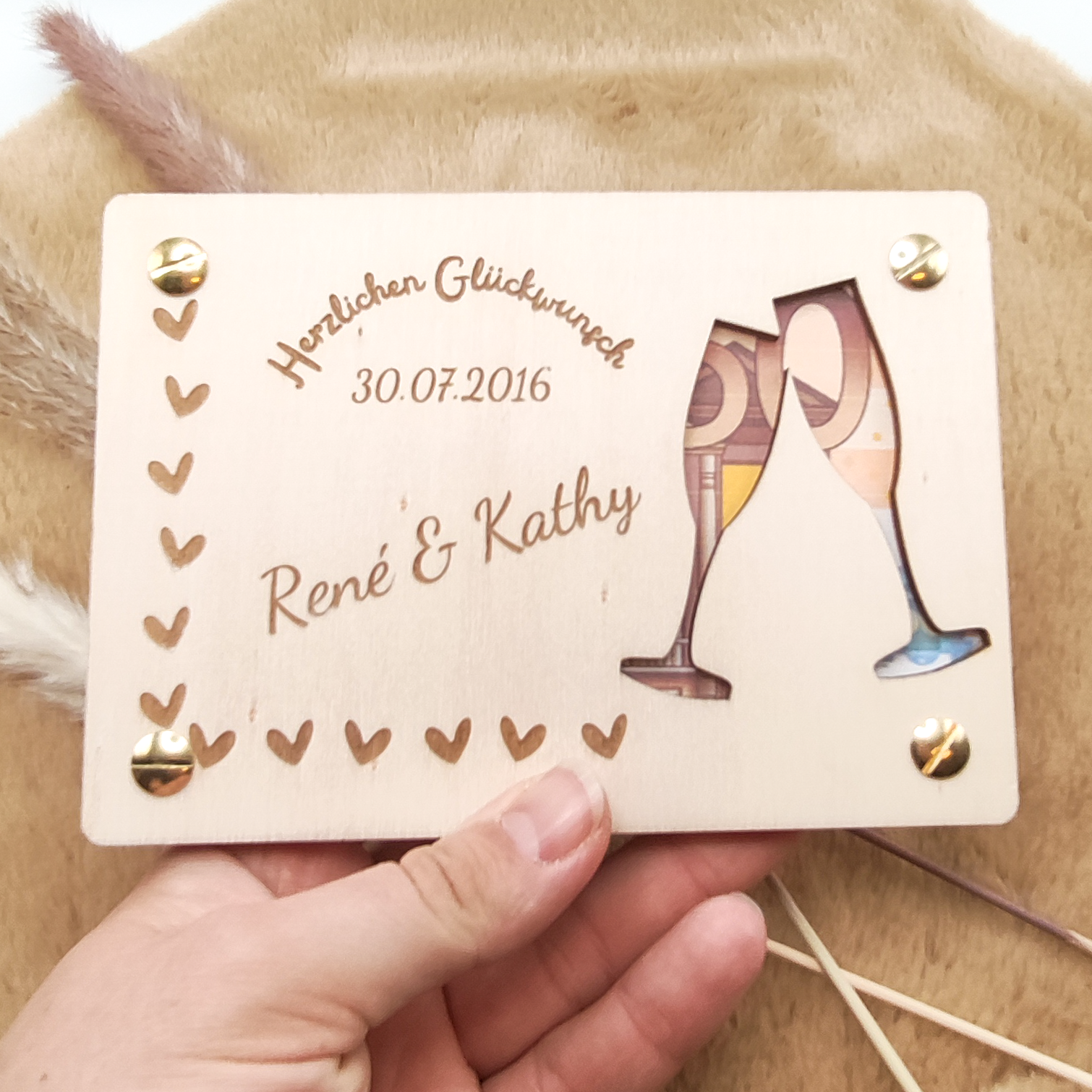 Personalisierte Geldgeschenkkarte aus Holz – Einzigartiges Hochzeitsgeschenk