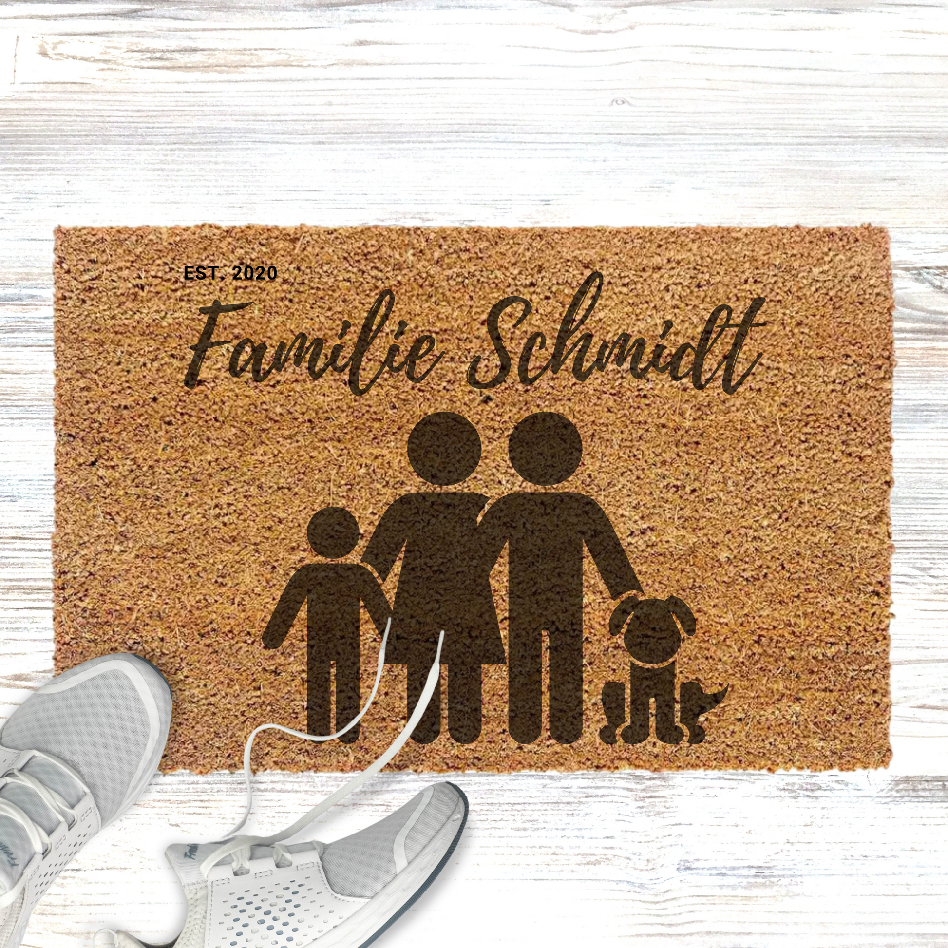 Personalisierte Kokos Fußmatte Familie mit Hund