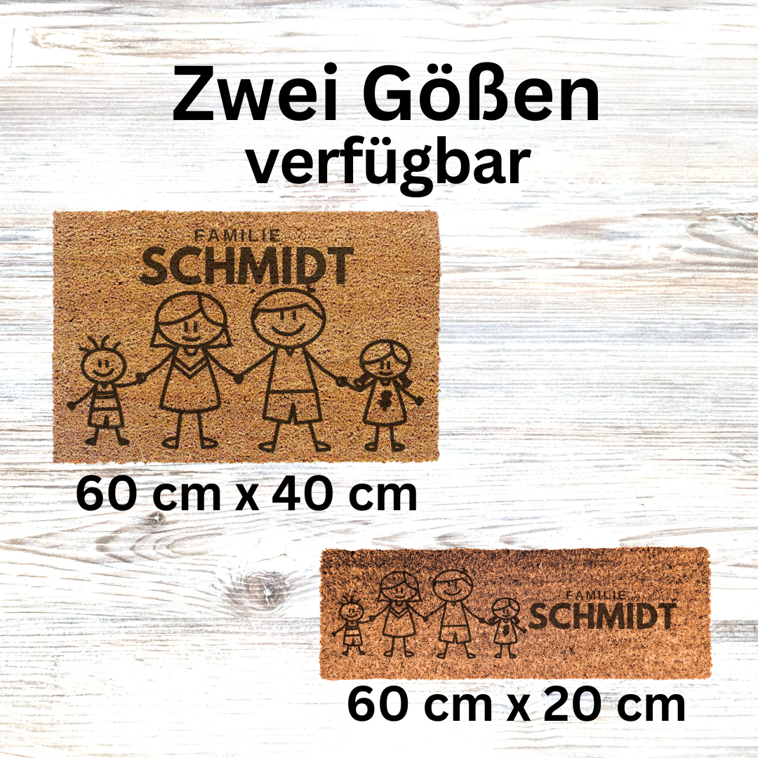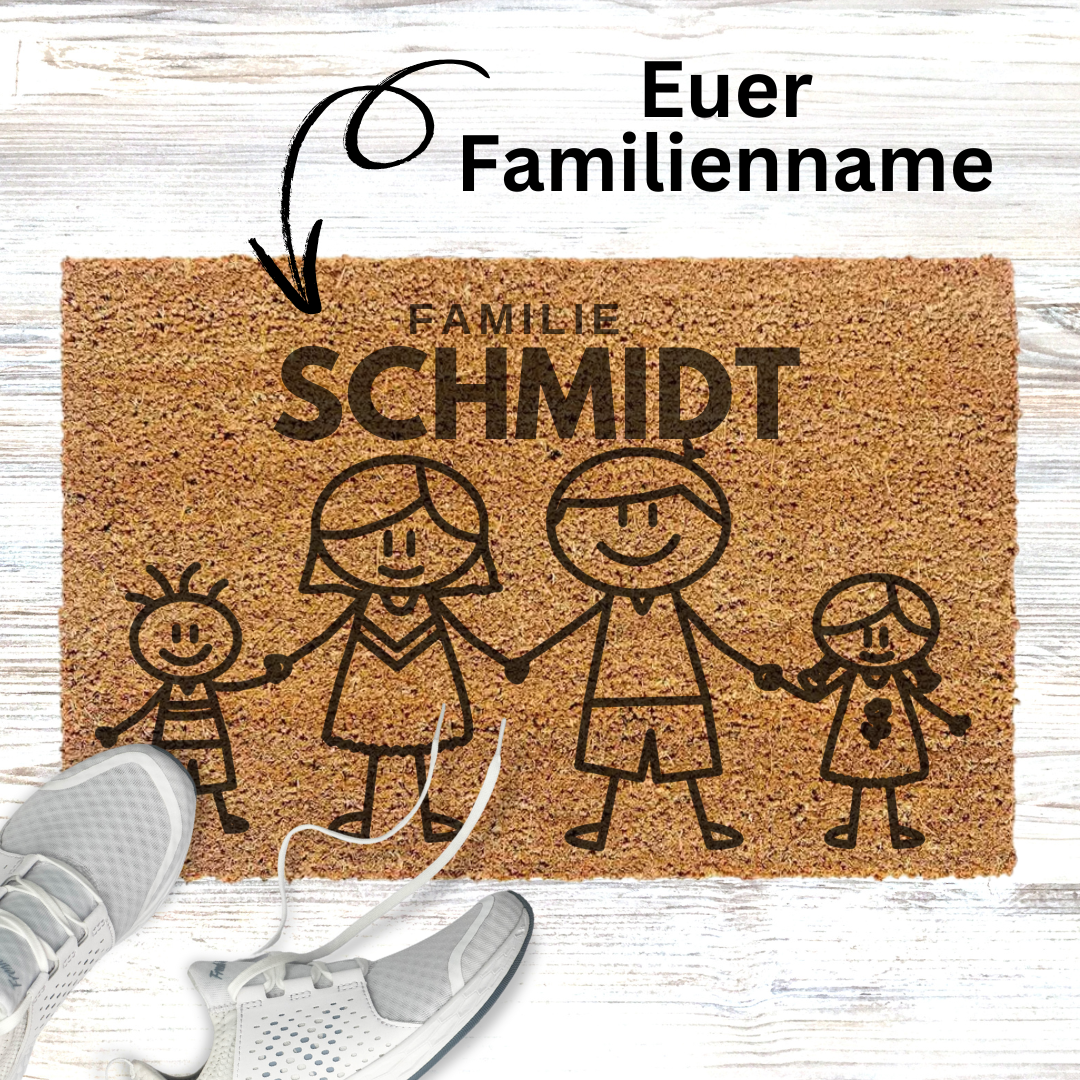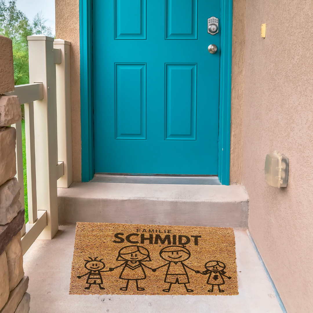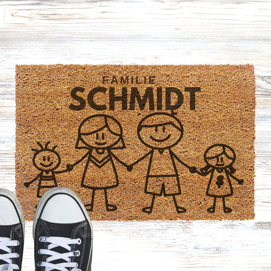 Personalisierte Kokos Fußmatte - Strichmännchen Familie