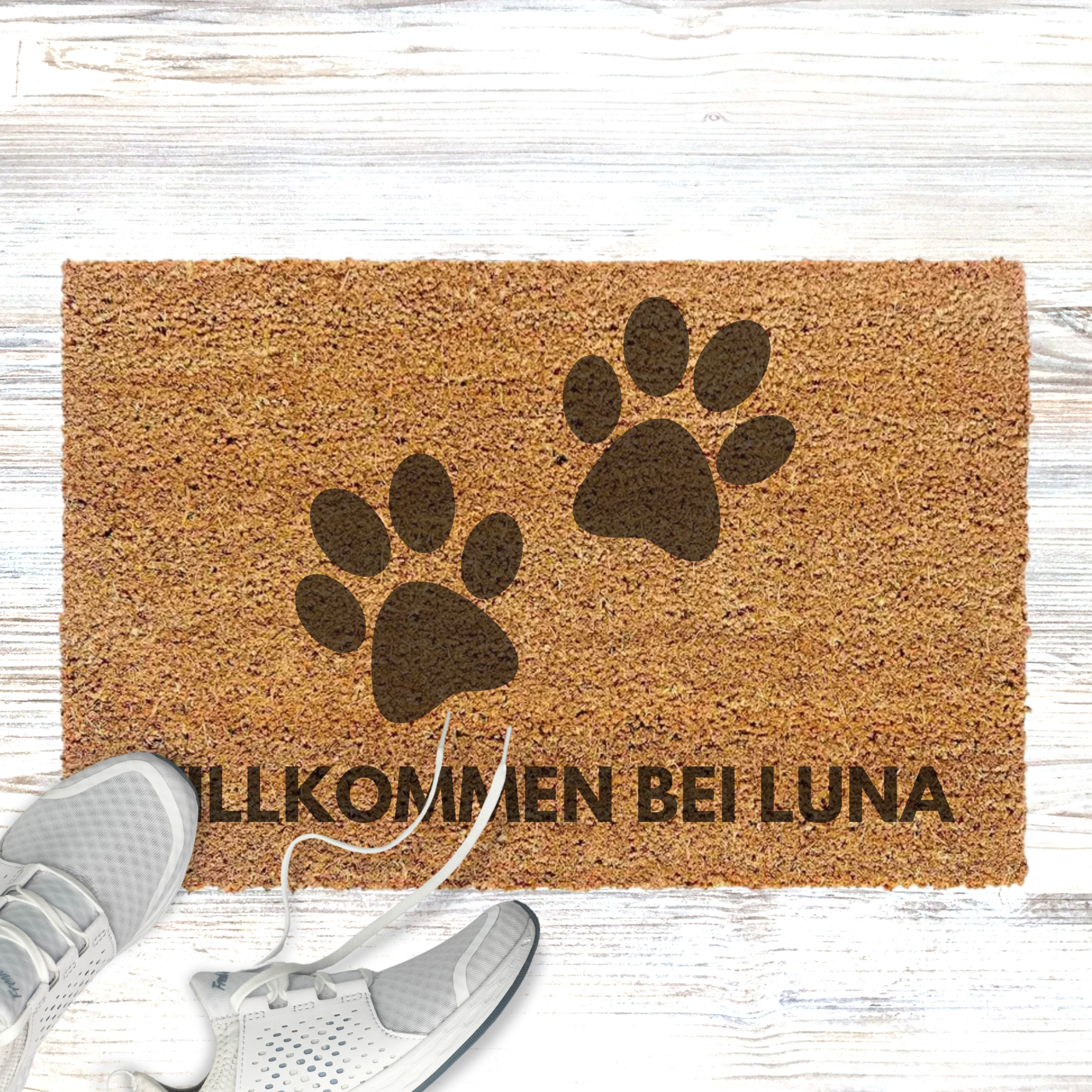 Personalisierte Kokos Fußmatte - Willkommen bei "Hundename"